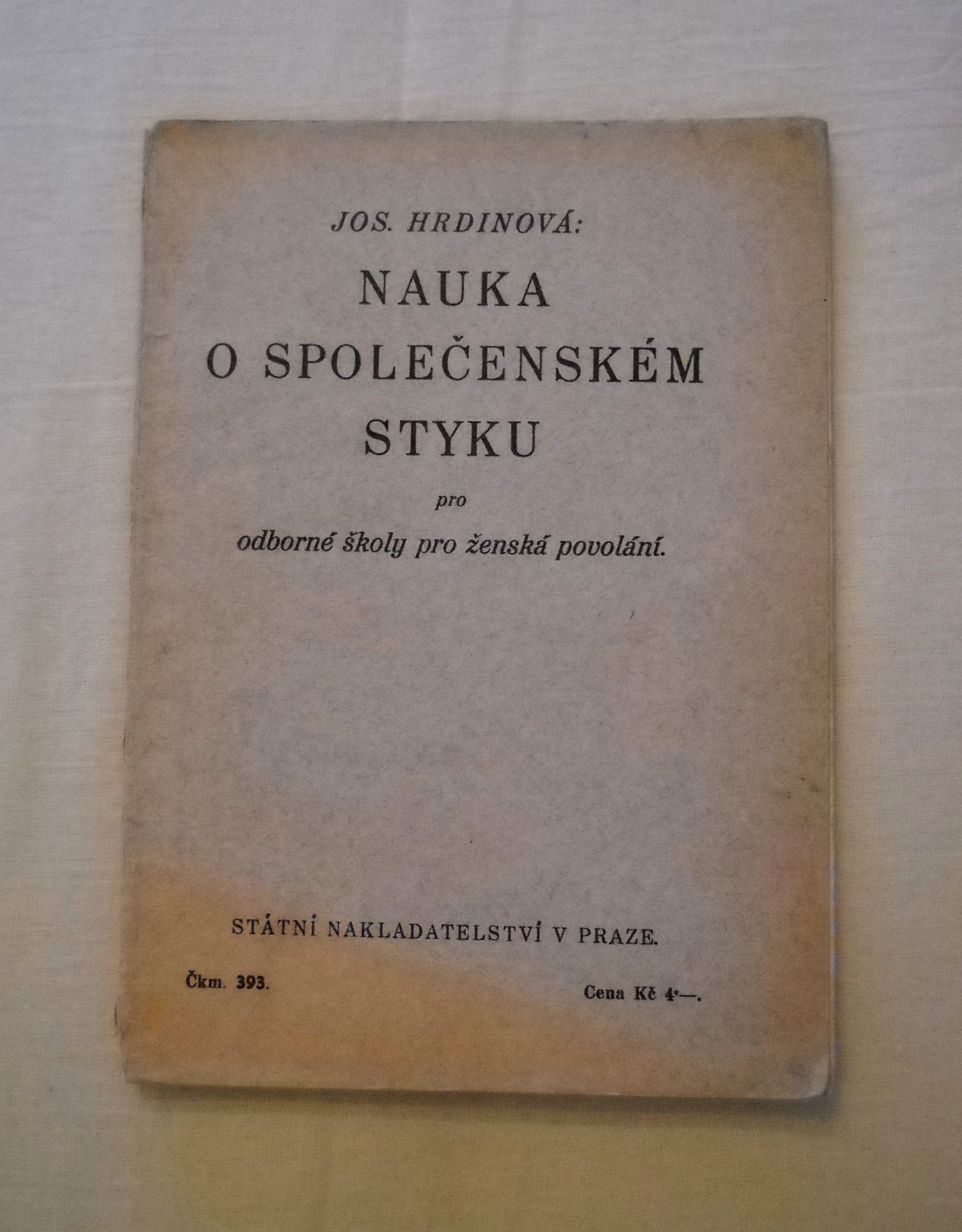 Josefína Hrdinová - Nauka o společenském styku pro odborné školy pro ženská povolání, Státní nakladatelství v Praze, Praha 1935. Schváleno výnosem ministerstva školství a národní osvěty jako učebnice pro odborné školy ženských povolání. Třetí vydání.