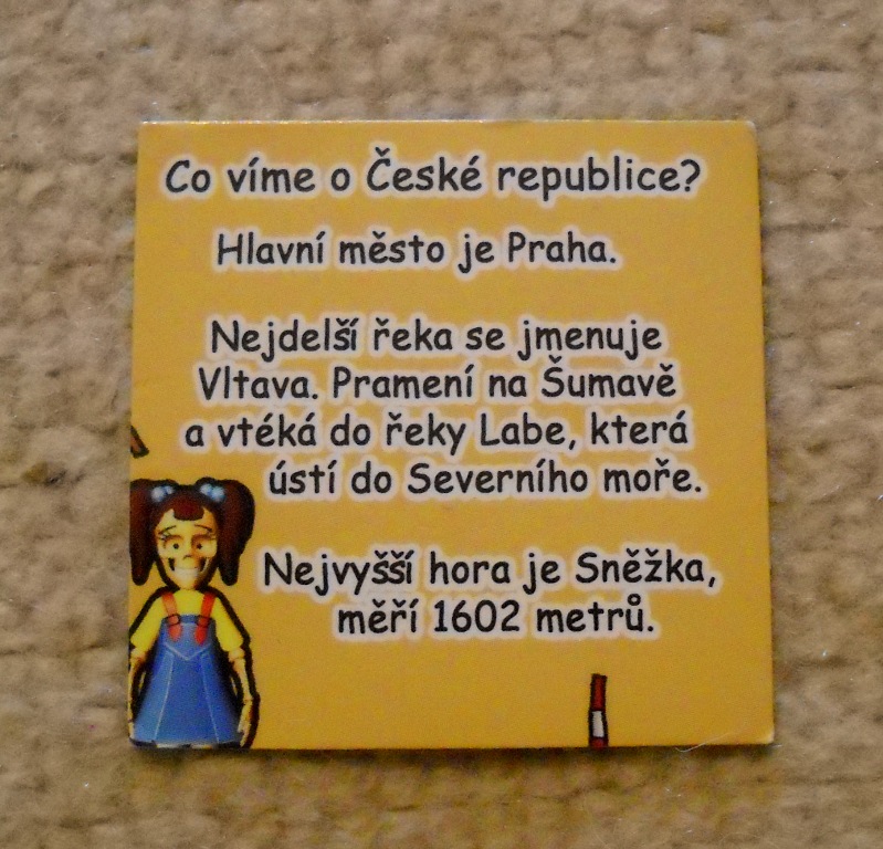 Sběratelská magnetická kartička - magnetka společnosti Danone z řady Kostíci Kreslená mapa pamětihodností Česka - Co víme o České republice?