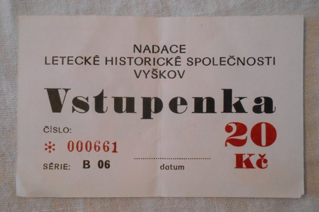 Originální dobová Vstupenka Nadace letecké historické společnosti Vyškov z roku 1997 v ceně 20,- Kč.
