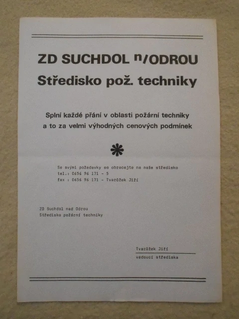 - Leták Středisko požární techniky ZD Suchdol nad Odrou - reklamní leták