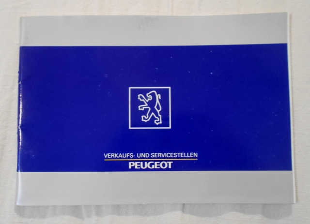Barevná automapa a seznam prodejních a servisních zastoupení Peugeot v Německu, vydáno jako brožura distribuovaná s prodávanými vozy značky.